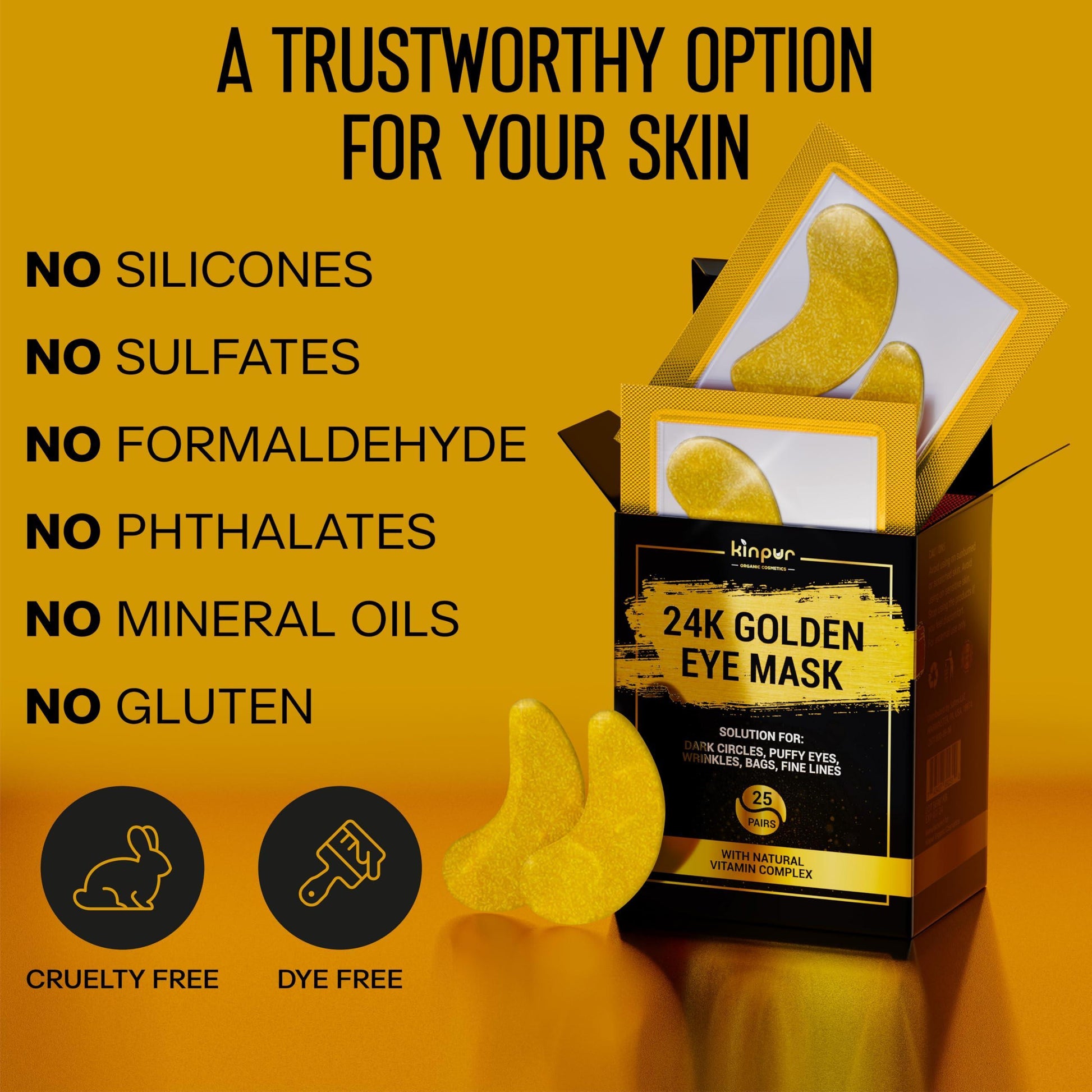 PREMIUM UNDER EYE MASKS FOR PUFFY EYES. Experience the benefits of a 24k gold eye mask that enhances elasticity and reduces signs of fatigue making your skin glow.