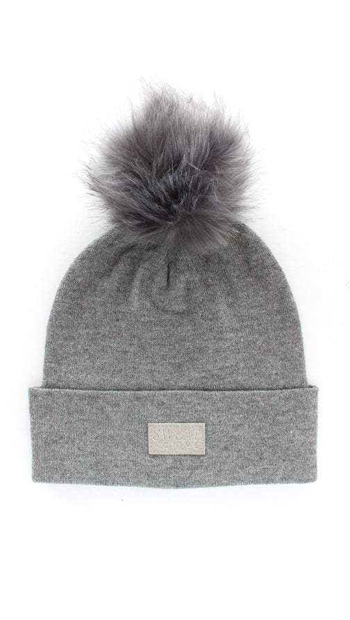 Description | Ultra soft knit beanie hat with oversized faux fur pom pom and leather label