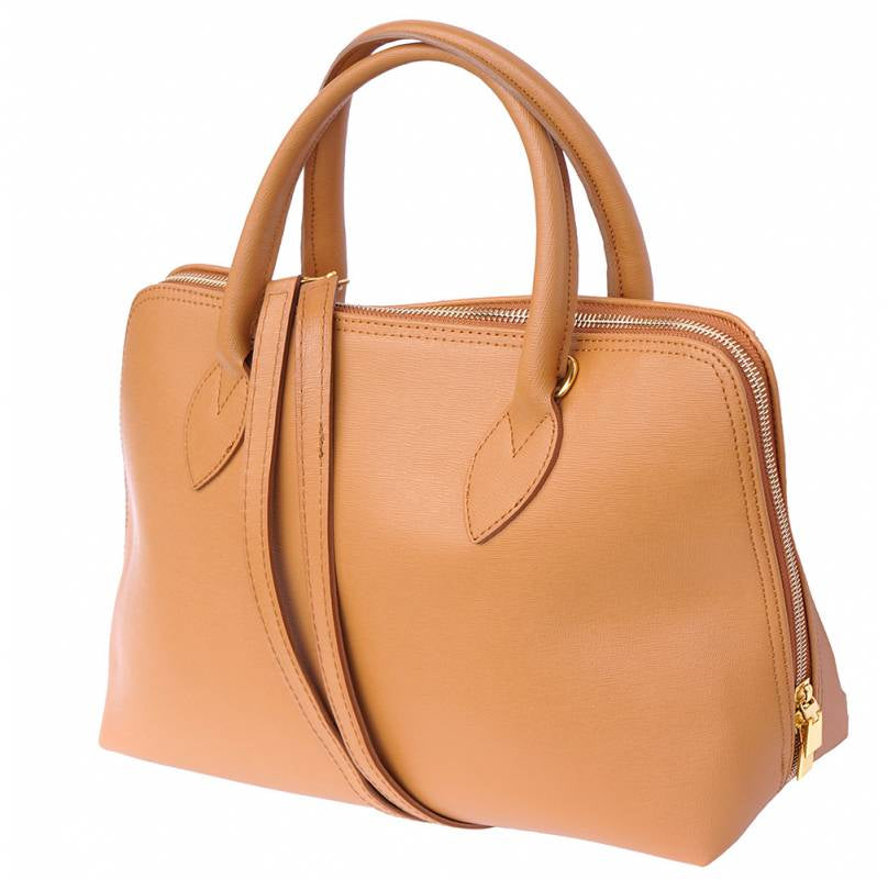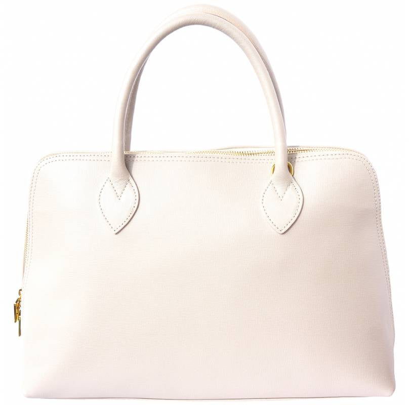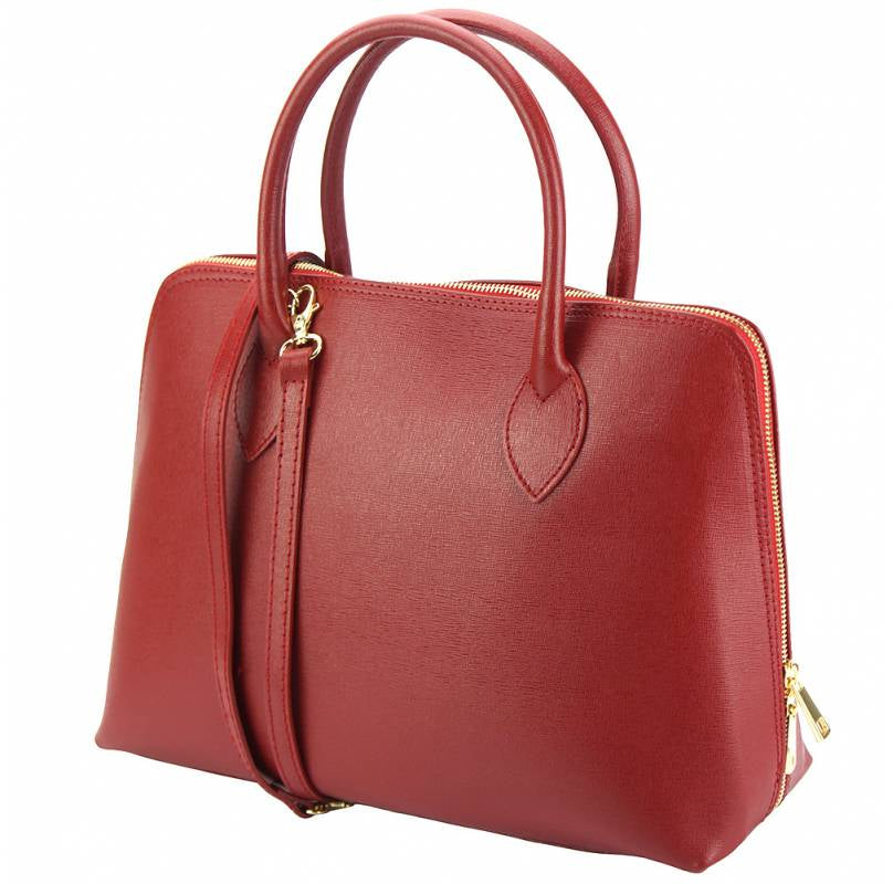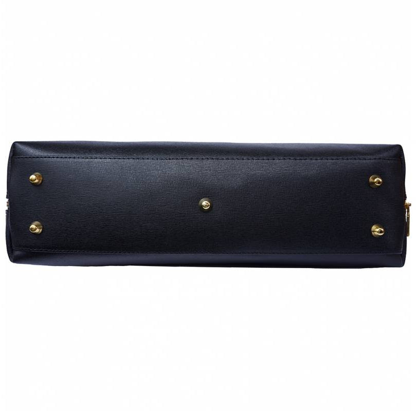 Made from Saffiano calf leather, this business bag has a hard structure. Zip closure. Double handle and removable leather shoulder strap.