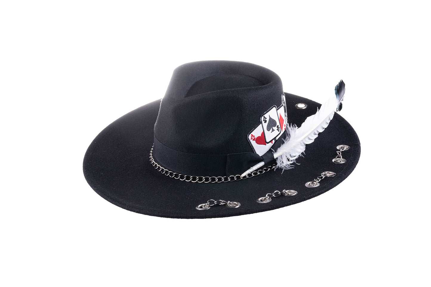 Uniquely designed and embellished with four Ace playing cards on the crown.